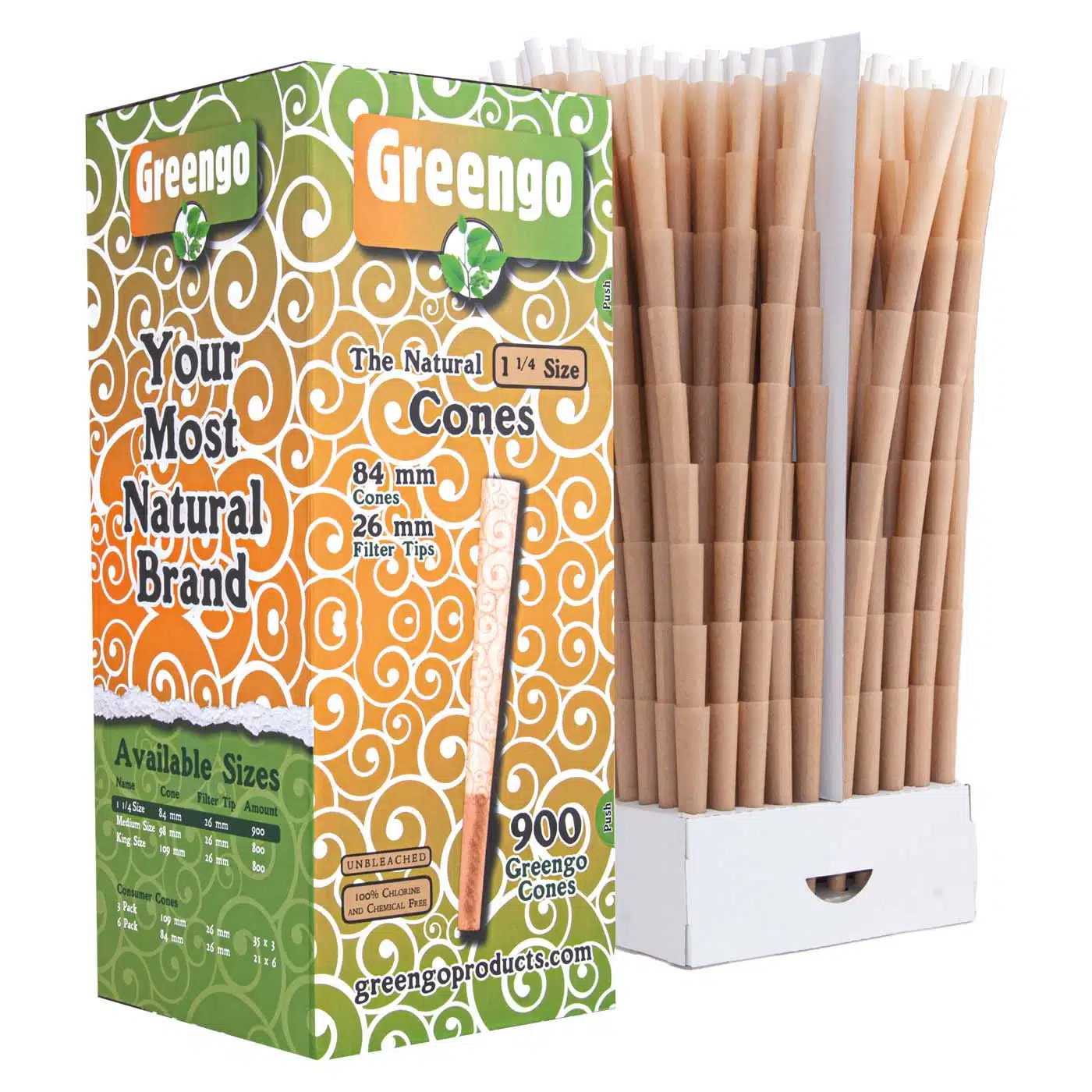 Greengo’s unbleached cones have a length of 84 mm, which makes them slightly smaller than the popular King Size format. Ideal for people who cannot or do not want to turn. All you have to do is fill the cone with your favorite spice mix. Then it’s just a matter of lighting it up and enjoying a pure smoking experience. This package contains 900 cones per box!